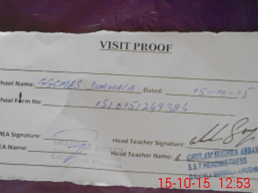 | Attendance Register | Head Teacher | MEA with School | Visit Proof |