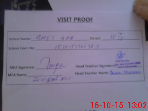 | Attendance Register | Head Teacher | MEA with School | Visit Proof |