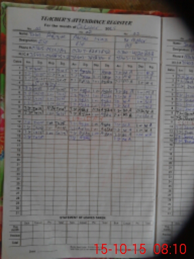 | Remarks (Use Separate Page if Required): Teacher Javaid Iqbal PST arrived 0835 at school so marked Absent | |||||