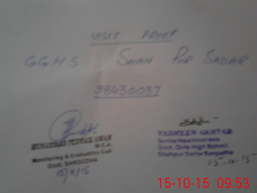 | EMIS Code: 38430037 | Name of School: GGHS SHAHPUR SADAR | |||