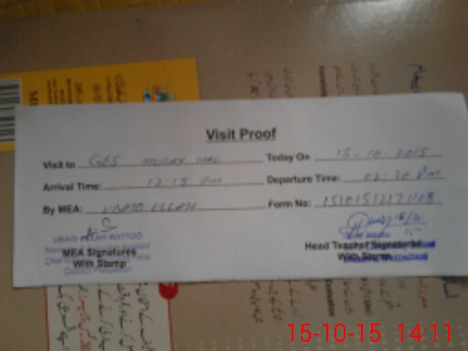 | Attendance Register | Head Teacher | MEA with School | Visit Proof |