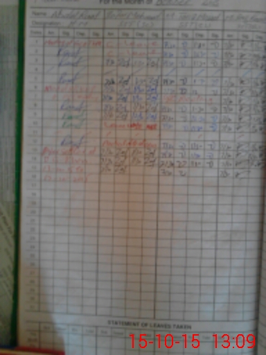 | CNIC | Full Name | Designation | R/C | Absence During Last Calender Month |
