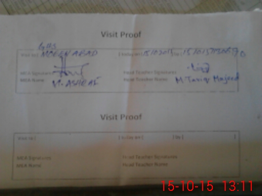 | Attendance Register | Head Teacher | MEA with School | Visit Proof |