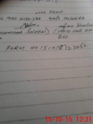 | Monitoring Date: 15-10-2015 | Start Time: 15-10-2015 12:03 PM | End Time: 15-10-2015 12:34 PM | Name of MEA: Mu**** Sa**** BN**** 33 | |