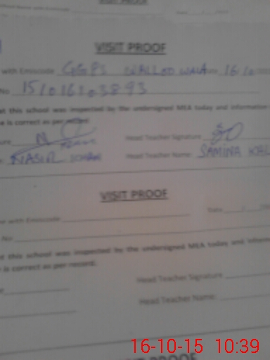 | Attendance Register | Head Teacher | MEA with School | Visit Proof |