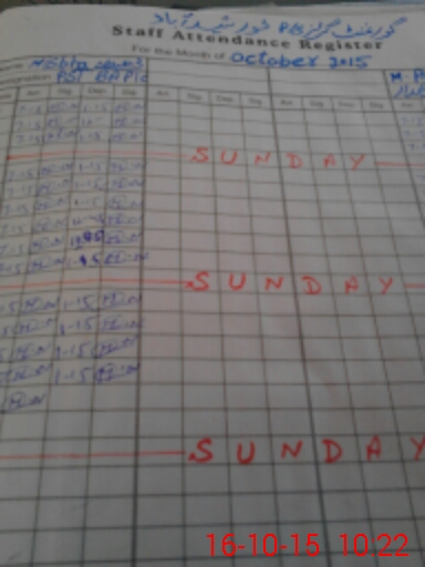 | CNIC | Full Name | Designation | R/C | Absence During Last Calender Month |