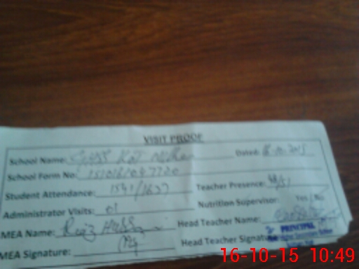 | Attendance Register | Head Teacher | MEA with School | Visit Proof |
