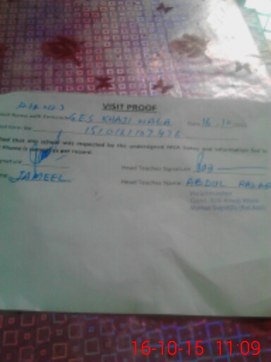 | Name: Mu**** Az**** Designation: (School Headmaster's/Headmistress's) S.S.T.(Sci) Phone/Cell Number: 03**** |