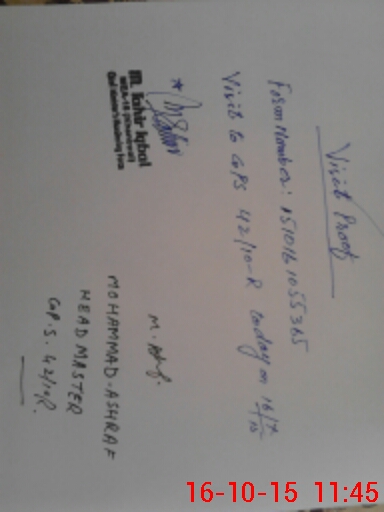 | Monitoring Date: 16-10-2015 | Start Time: 16-10-2015 10:55 AM | End Time: 16-10-2015 11:51 AM | Name of MEA: M.Ta**** Iq**** (S**** | |