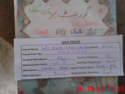| School Visited by School Health & Nutrition Supervisor (No. of Visits) | 1 | Name1: | Javed Maqsood | Name2: | |