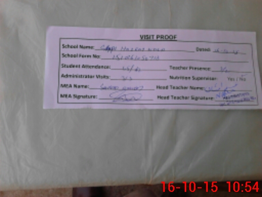 | Attendance Register | Head Teacher | MEA with School | Visit Proof |