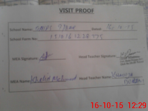 | Attendance Register | Head Teacher | MEA with School | Visit Proof |