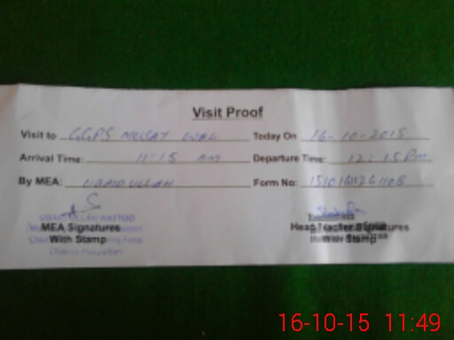 | Certified that this School was Inspected by the Undersigned MEA/DMO Today and the Information Stated Above is as Per Record. | |||||