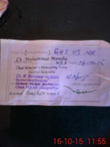 | EMIS Code: 38440015 | Name of School: GHS CHAK NO.113 NB | |||