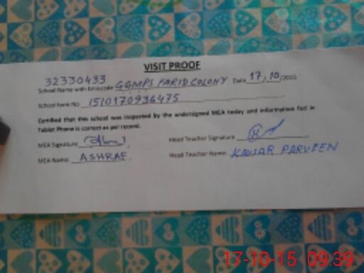| Attendance Register | Head Teacher | MEA with School | Visit Proof |