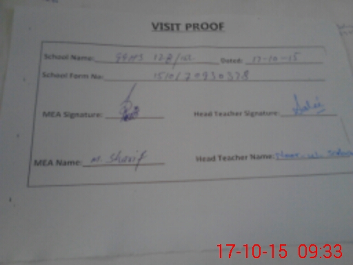 | Attendance Register | Head Teacher | MEA with School | Visit Proof |