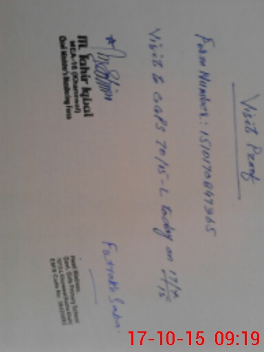 | Monitoring Date: 17-10-2015 | Start Time: 17-10-2015 08:46 AM | End Time: 17-10-2015 09:25 AM | Name of MEA: M.Ta**** Iq**** (S**** | |