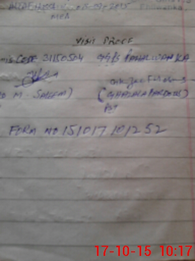 | Monitoring Date: 17-10-2015 | Start Time: 17-10-2015 09:54 AM | End Time: 17-10-2015 10:18 AM | Name of MEA: Mu**** Sa**** BN**** 33 | |