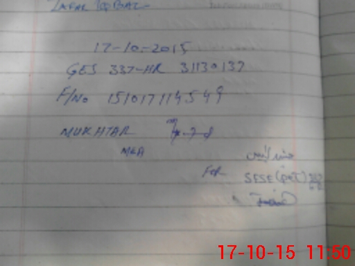 | Monitoring Date: 17-10-2015 | Start Time: 17-10-2015 11:22 AM | End Time: 17-10-2015 11:55 AM | Name of MEA: Mu**** ah**** BN**** 29 | |