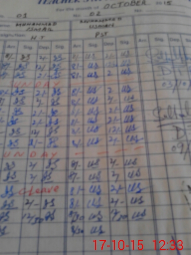 | CNIC | Full Name | Designation | R/C | Absence During Last Calender Month |
