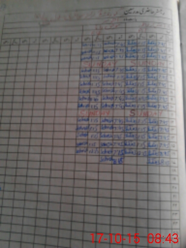 | CNIC | Full Name | Designation | R/C | Absence During Last Calender Month |