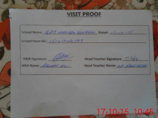 | Attendance Register | Head Teacher | MEA with School | Visit Proof |