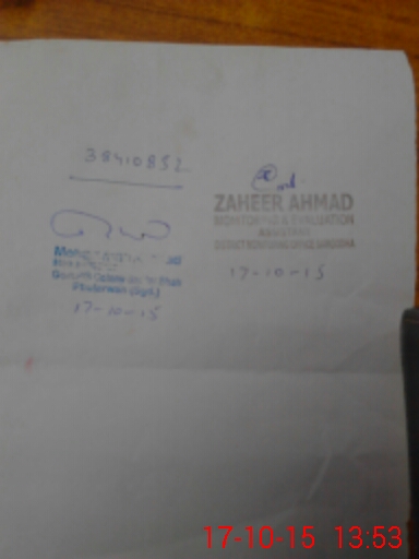 | EMIS Code: 38410852 | Name of School: GMPS COLONY SARDAR SHAH | |||