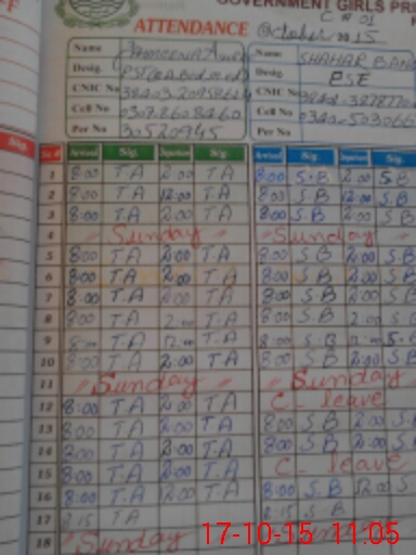 | CNIC | Full Name | Designation | R/C | Absence During Last Calender Month |
