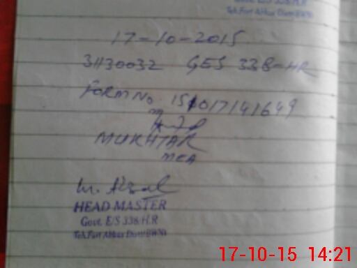 | Name: Na**** Ah**** Designation: (School Headmaster's/Headmistress's) SS T Phone/Cell Number: 03**** |