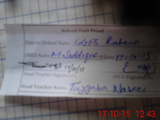 | Attendance Register | Head Teacher | MEA with School | Visit Proof |