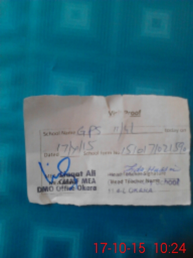 | Name: FI**** HU**** Designation: (School Headmaster's/Headmistress's) PST H MASTER Phone/Cell Number: 03**** |