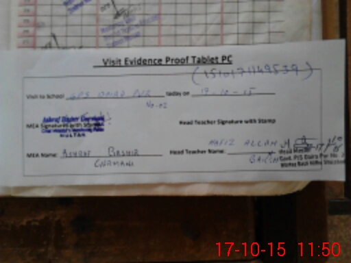 | Attendance Register | Head Teacher | MEA with School | Visit Proof |