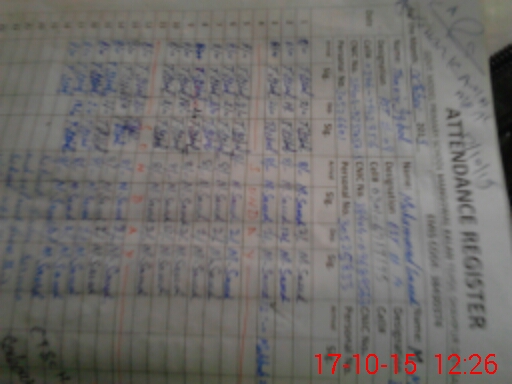 | CNIC | Full Name | Designation | R/C | Absence During Last Calender Month |