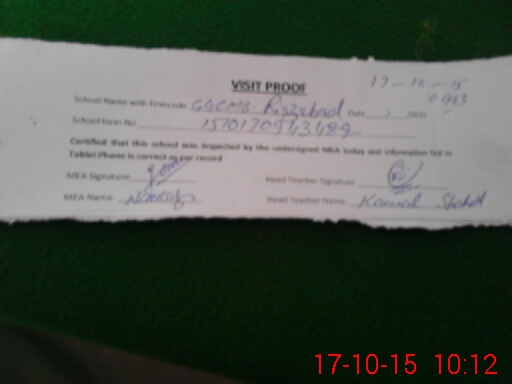 | Monitoring Date: 17-10-2015 | Start Time: 17-10-2015 09:43 AM | End Time: 17-10-2015 10:31 AM | Name of MEA: Na**** Ah**** Kh**** | |