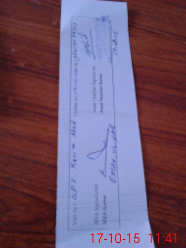 | Attendance Register | Head Teacher | MEA with School | Visit Proof |
