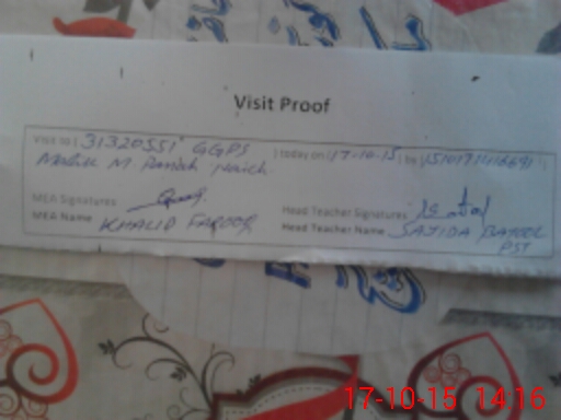 | Attendance Register | Head Teacher | MEA with School | Visit Proof |