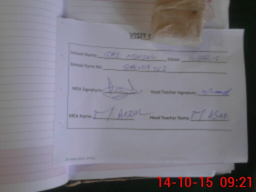| Attendance Register | Head Teacher | MEA with School | Visit Proof |