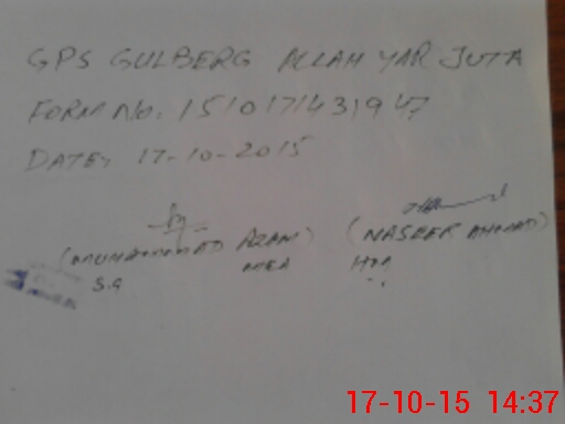 | Monitoring Date: 17-10-2015 | Start Time: 17-10-2015 02:04 PM | End Time: 17-10-2015 02:38 PM | Name of MEA: S-**** MO**** AZ**** (R**** 12**** | |
