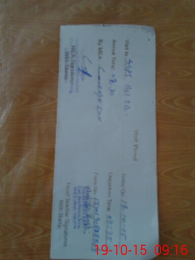 | Monitoring Date: 19-10-2015 | Start Time: 19-10-2015 08:28 AM | End Time: 19-10-2015 09:16 AM | Name of MEA: Ch**** Di**** | |