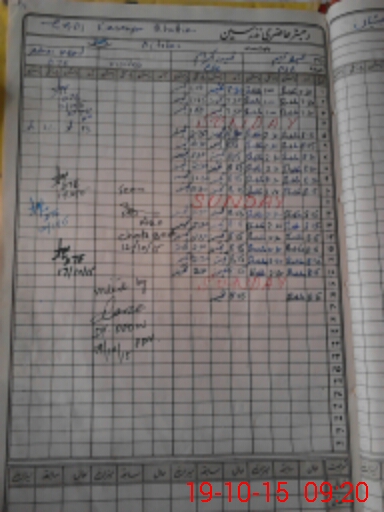| CNIC | Full Name | Designation | R/C | Absence During Last Calender Month |