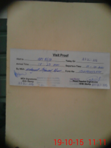 | Monitoring Date: 19-10-2015 | Start Time: 19-10-2015 10:23 AM | End Time: 19-10-2015 11:13 AM | Name of MEA: Hi**** Al**** Kh**** (R**** | |