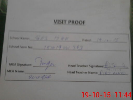 | Attendance Register | Head Teacher | MEA with School | Visit Proof |