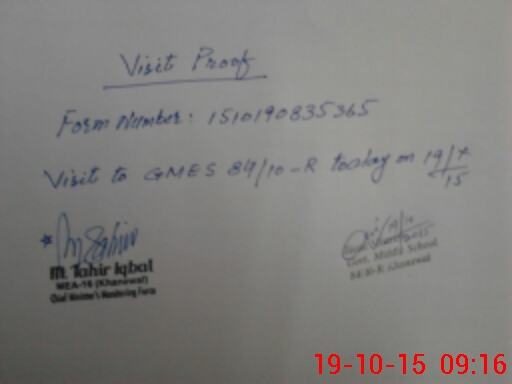 | EMIS Code: 36420426 | Name of School: GMES 84/10-R, KHANEWAL | |||
