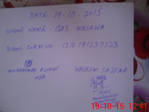 | Name: WA**** SA**** Designation: (School Headmaster's/Headmistress's) SSE Phone/Cell Number: 03**** |
