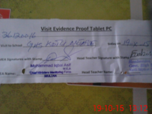 | Certified that this School was Inspected by the Undersigned MEA/DMO Today and the Information Stated Above is as Per Record. | |||||