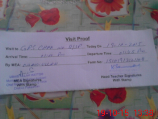 | School Visited by School Health & Nutrition Supervisor (No. of Visits) | 1 | Name1: | ATIF FARID CHISHTI | Name2: | |