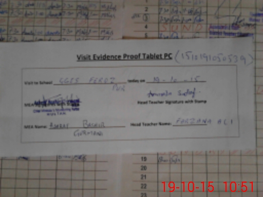 | Attendance Register | Head Teacher | MEA with School | Visit Proof |