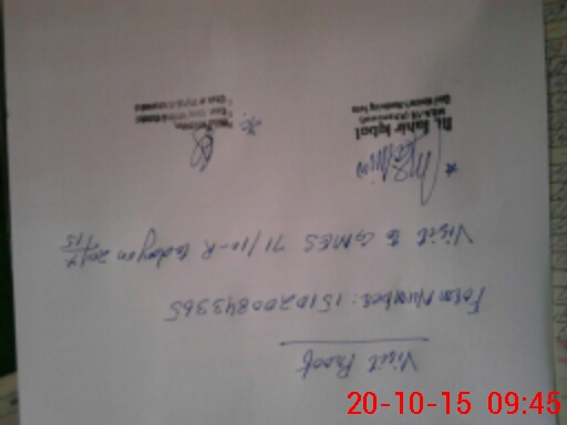 | Monitoring Date: 20-10-2015 | Start Time: 20-10-2015 08:43 AM | End Time: 20-10-2015 09:47 AM | Name of MEA: M.Ta**** Iq**** (S**** | |