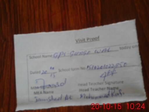 | Attendance Register | Head Teacher | MEA with School | Visit Proof |