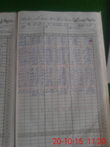 | CNIC | Full Name | Designation | R/C | Absence During Last Calender Month |